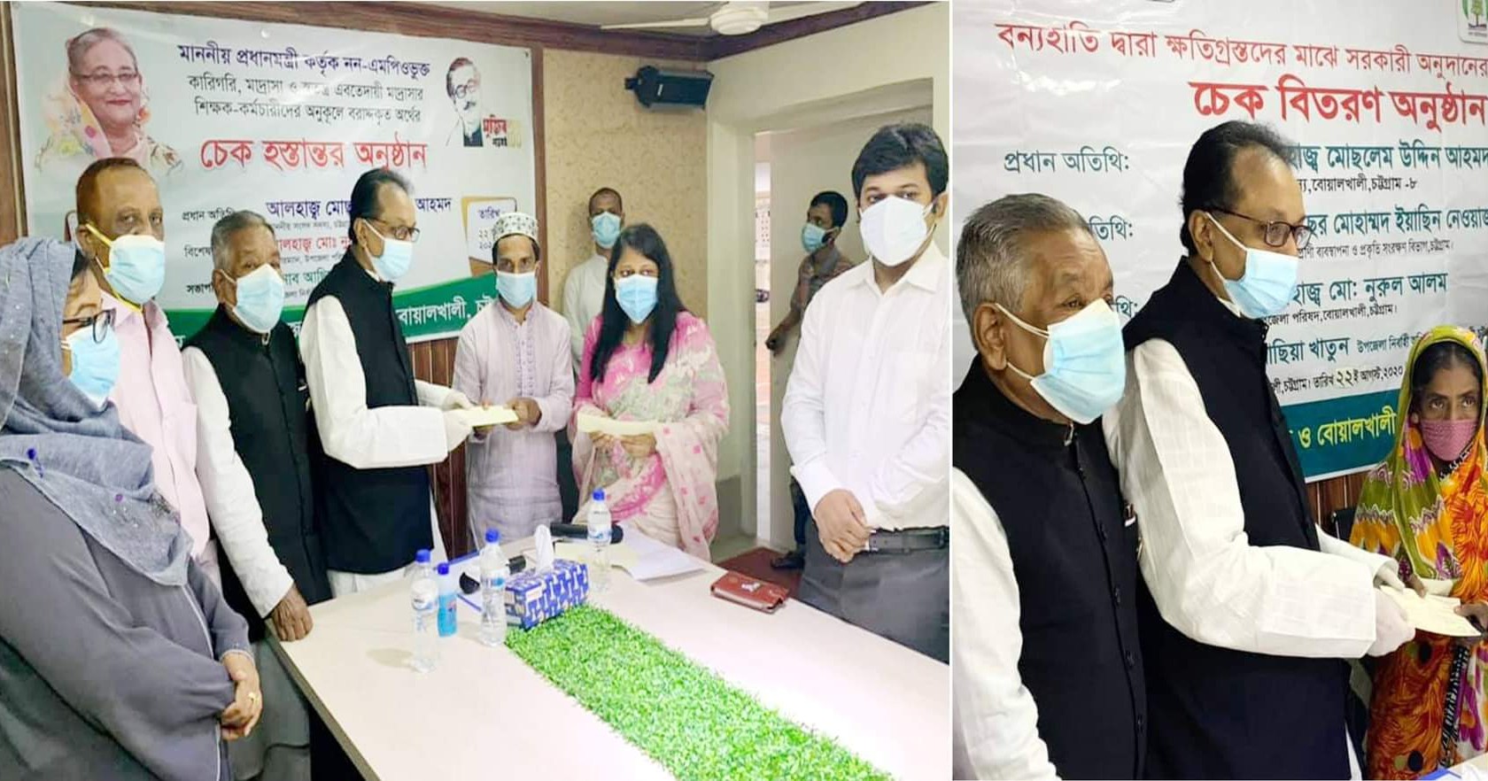 বোয়ালখালীতে নন এমপিওভুক্ত শিক্ষক কর্মচারী ও বন্যহাতির আক্রমণে ক্ষতিগ্রস্তদের মাঝে চেক বিতরণ