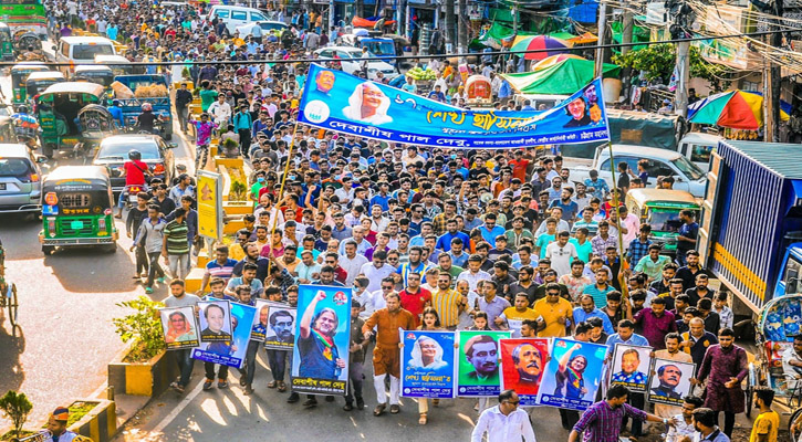 বঙ্গবন্ধু কন্যার স্বদেশ প্রত্যার্বতন দিবসে বর্ণাঢ্য র্যালি