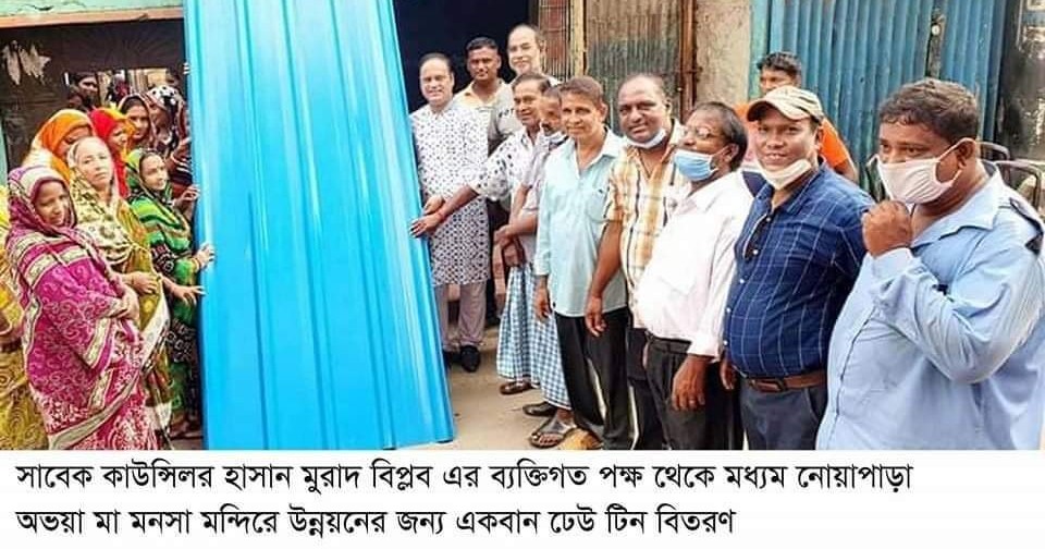 হাসান মুরাদ বিপ্লবে’র পক্ষ থেকে মধ্যম নোয়াপাড়া অভয়া মা মনসা মন্দিরে উন্নয়নে’র জন্য ঢেউ টিন বিতরণ
