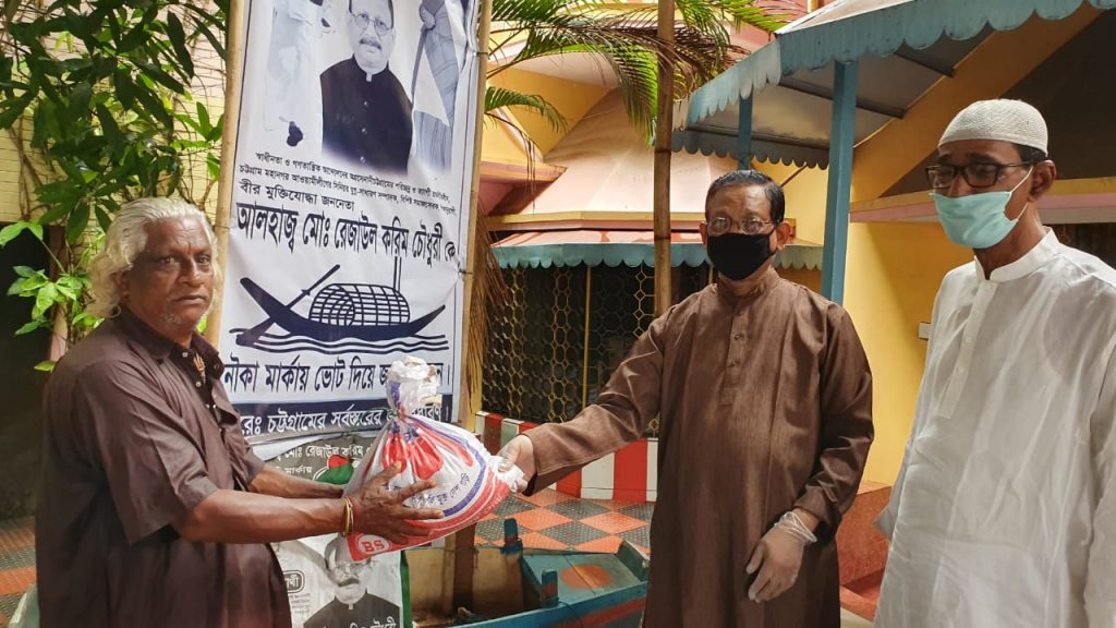 করোনা মহামারির কারণে ঘরে থাকা মানুষের ঘরে ঘরে গিয়ে বীর মুক্তিযোদ্ধা এম.রেজাউল করিম চৌধুরী নিজ হাতে খাদ্যসামগ্রী তুলে দিচ্ছেন। শুধু তাই নয়, নগরীর বিভিন্ন এলাকায় খোঁজ নিয়ে নিজে গিয়ে অথবা নিজের বাসায় ডেকে অসহায় মানুষের হাতে খাদ্যসামগ্রী তুলে দিচ্ছেন তিনি।