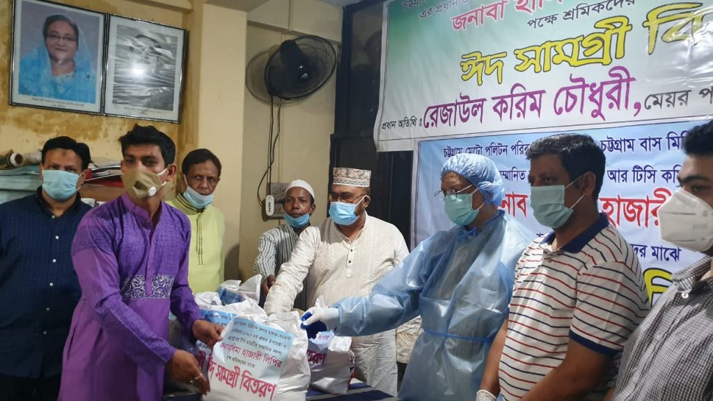 চট্টগ্রাম মেট্রোপলিটন পরিবহন মালিক গ্রুপ, চট্টগ্রাম বাস, মিনিবাস, হিউম্যান হলার মালিক সমিতির সভাপতি ও আরটিসি সমিতির সদস্য হালিমা হাজারী লিপির উদ্দ্যোগে পরিবহন মালিক ও শ্রমিকদের মাঝে নগদ অর্থ ও ঈদ সামগ্রী উপহার প্রদানকালে জননেতা এম. রেজাউল করিম চৌধুরী বলেন, দেশের এই দূর্যোগকালীন সময়ে সাধারণ মানুষের পাশে থাকা মানবিক কাজ। দেশে দুর্যোগ, দুর্বিপাক, যুদ্ধাবস্থা ও মহামারীতে সকলকে অত্যন্ত ধর্য্য সহকারে সরকারি নির্দেশনা অনুসরন করে চলতে হয়। দেশের বৃহত্তর জনগোষ্ঠীর জানমাল রক্ষায় আমাদের উচিৎ সরকারী নির্দেশনা যথাযথ ভাবে অনুসরন করা।