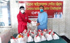 বাংলাদেশ রেড ক্রিসেন্ট সোসাইটির ম্যানেজিং বোর্ড সদস্য ও চট্টগ্রাম জেলা ইউনিটের ভাইস চেয়ারম্যান ডাঃ শেখ শফিউল আজম ও চট্টগ্রাম সিটি ইউনিটের ভাইস চেয়ারম্যান এম.এ.ছালাম এর তত্ত্বাবধাণে নগরীর প্রিন্স অব চিটাগং কোভিড ১৯ আইসোলেশন সেন্টার, সিটি হল কোভিড ১৯ আইসোলেশন সেন্টারে নিয়োজিত স্বাস্থ্যকর্মী ও স্বেচ্ছাসেবকদের কাজে অনুপ্রাণিত করার জন্য রান্না করা খাবার প্রেরণ করা হয়।