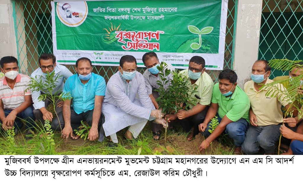 চিটাগাং মেইল : বঙ্গবন্ধুর জন্মশতবার্ষিকী মুজিববর্ষ উপলক্ষে গ্রীন এনভায়রনমেন্ট মুভমেন্ট চট্টগ্রাম মহানগরের উদ্যোগে আয়োজিত বৃক্ষরোপণ কর্মসূচি-২০২০ অনুষ্ঠানের অংশ হিসেবে নগরীর চান্দগাঁও থানাধীন এন এম সি আদর্শ উচ্চ বিদ্যালয়ে ১৮ জুলাই শনিবার দুপুর ১২ ঘটিকায় স্কুল কেন্দ্রীক বৃক্ষরোপণ কর্মসূচির উদ্বোধন করা হয়।