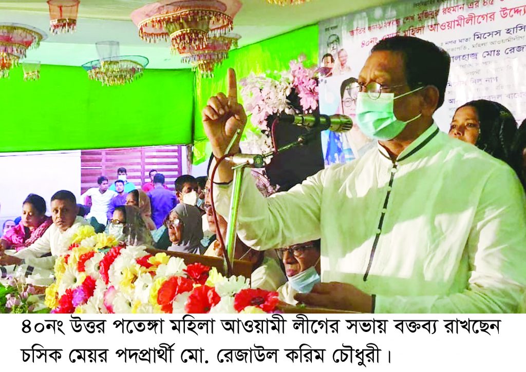 সভায় রেজাউল করিম চৌধুরী আরো বলেন, ১৯৬৯-এর গণ-অভ্যুত্থানের ফলে বঙ্গবন্ধু বীরের বেশে মুক্তির দিশারি রূপে মুক্ত হলে শুধু আওয়ামী লীগ নয়, সমগ্র পূর্ব পাকিস্তান যেন প্রাণ ফিরে পায়। বঙ্গবন্ধুর মনের গভীরে সুখী সমৃদ্ধশালী সোনার বাংলার চিত্র ছিল আঁকা, তাতে তিনি যুক্ত করেছিলেন প্রগতিশীল চিন্তার বিশিষ্ট নারীদের।