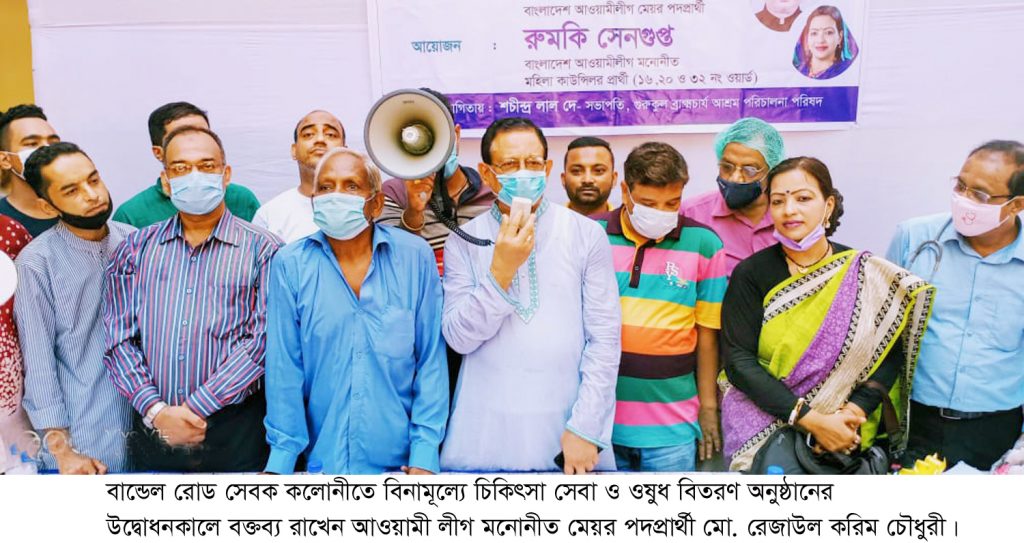নগরীর আন্দরকিল্লা ওয়ার্ডের বান্ডেল রোড সেবক কলোনীতে আওয়ামী লীগ মনোনীত কাউন্সিলর পদপ্রার্থী নারীনেত্রী রুমকি সেনগুপ্তর উদ্যোগে বিনামূল্যে চিকিৎসা সেবা, ব্লাড গ্রুপ নির্ণয় ও ওষুধ বিতরণ উদ্বোধনী অনুষ্ঠানে প্রধান অতিথির বক্তব্যে চট্টগ্রাম মহানগর আওয়ামী লীগের যুগ্ম সাধারণ সম্পাদক ও আওয়ামী লীগ মনোনীত মেয়র পদপ্রার্থী মুক্তিযোদ্ধা মো. রেজাউল করিম চৌধুরী এসব কথা বলেন।