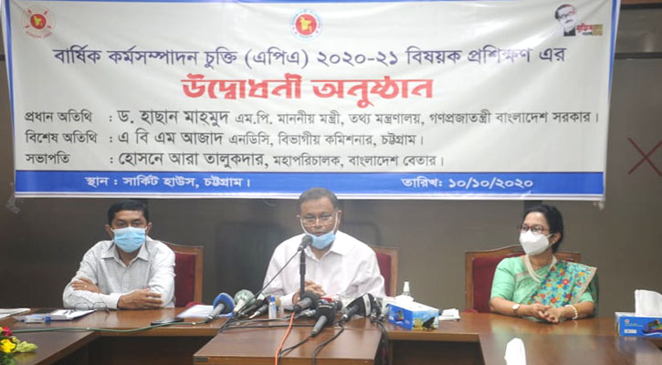 চিটাগাং মেইল : তথ্যমন্ত্রী ড. হাছান মাহমুদ বলেছেন, গণমাধ্যমকর্মী আইন এবং সম্প্রচার আইন হলে গণমাধ্যমকর্মীদের বেতন কাঠামো থেকে শুরু করে সবকিছু সুরক্ষিত হবে। তবে আইন পাস করা কোনো মন্ত্রণালয়ের একক বিষয় নয়।শনিবার (১০ অক্টোবর) সকালে সার্কিট হাউজে বাংলাদেশ বেতার আয়োজিত বার্ষিক কর্মসম্পাদন চুক্তি ২০২০-২১ বিষয়ক প্রশিক্ষণের উদ্বোধনী অনুষ্ঠানে প্রধান অতিথির বক্তব্যে তিনি এসব কথা বলেন।