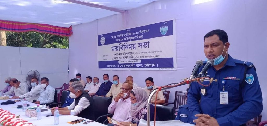 আসন্ন শারদীয় দূর্গাপূজা উদযাপন উপলক্ষে আইনশৃঙ্খলা বিষয়ক মতবিনিময় সভা আয়োজন করে বোয়ালখালী থানা পুলিশ । উক্ত মতবিনিময় সভায় প্রধান অতিথির বক্তব্যে এসব কথা বলেন পুলিশ সুপার তারিক রহমান । ১১ অক্টোবর রোববার সকালে বোয়ালখালী থানার মাঠ প্রাঙ্গণে এ অনুষ্ঠান অনুষ্ঠিত হয়।