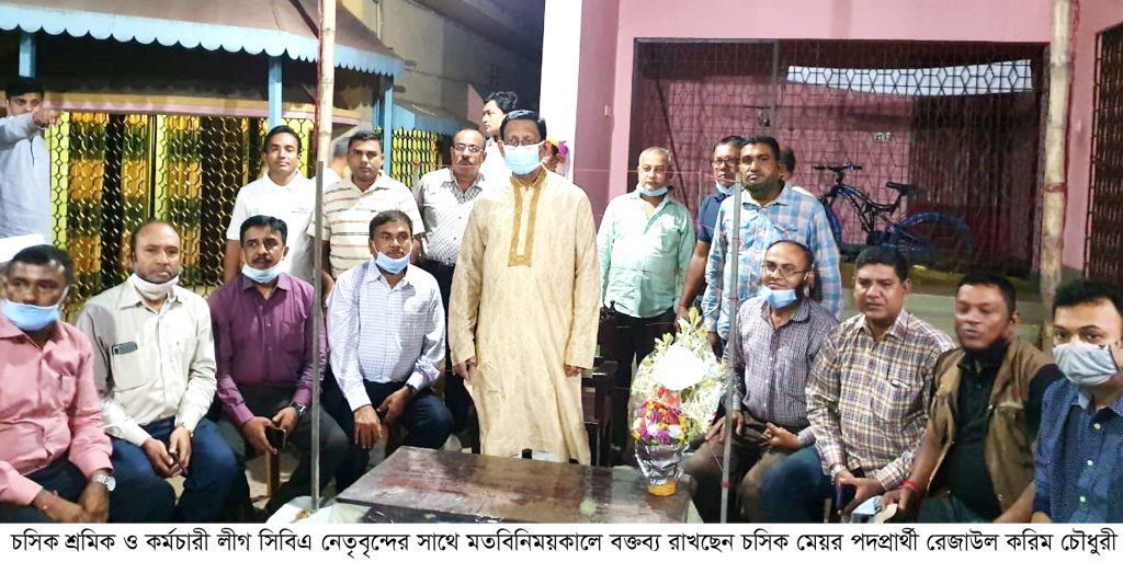 চিটাগাং মেইল: আসন্ন চট্টগ্রাম সিটি কর্পোরেশন নির্বাচনে আওয়ামী লীগ মনোনীত মেয়র পদপ্রার্থী বীর মুক্তিযোদ্ধা মো. রেজাউল করিম চৌধুরীর সাথে চট্টগ্রাম সিটি কর্পোরেশন শ্রমিক ও কর্মচারী লীগ সিবিএ নেতৃবৃন্দ মঙ্গলবার ১০ নভেম্বর সন্ধ্যায় তাঁর বহদ্দারহাটস্থ বাসভবনে সৌজন্য সাক্ষাৎ ও মতবিনিময় করেন।