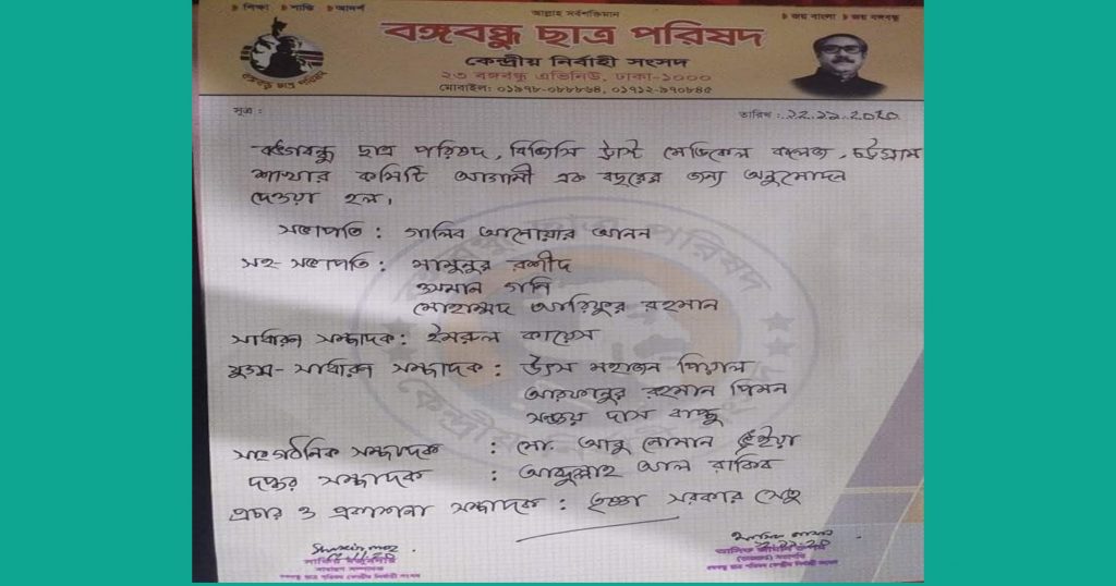 বঙ্গবন্ধু ছাত্র পরিষদ বিজিসি ট্রাস্ট মেডিকেল কলেজ শাখার কমিটি ঘোষণা