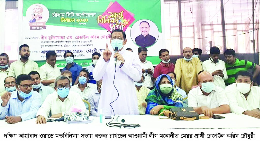 চিটাগাং মেইল: আসন্ন চট্টগ্রাম সিটি করপোরেশন নির্বাচনে নৌকা প্রতীকের সমর্থনে কেন্দ্র ভিত্তিক নির্বাচন পরিচালনা কমিটির ধারাবাহিক মতবিনিময় সভায় অংশ হিসেবে মেয়র প্রার্থী এম. রেজাউল করিম চৌধুরী ২৭ নং দক্ষিন আগ্রাবাদ ওয়ার্ডের নির্বাচন পরিচালনা কমিটির নেতৃবৃন্দের সাথে মতবিনিময় সভা ১৫ নভেম্বর রবিবার স্থানীয় আব্দুল্লাহ কমিউনিটি সেন্টারে অনুষ্ঠিত হয়।