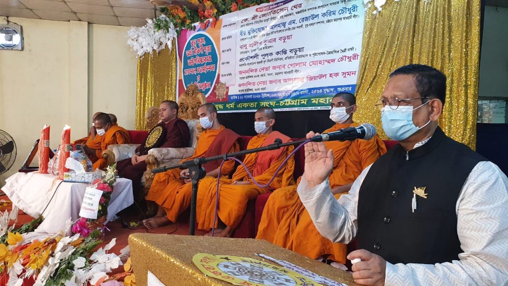 শুক্রবার ২০ নভেম্বর নগরীর একটি কমিউনিটি সেন্টারে বুদ্ধ ধর্ম একতা সংঘ চট্টগ্রাম মহানগর আয়োজিত বুদ্ধ পূজা, অর্হৎ সাবলী পূজা, অষ্টপরিষ্কারসহ সংঘদান, সদ্ধমর্দেশনা ও বর্ষপূতি অনুষ্ঠানে প্রধান অতিথির বক্তব্য এসব কথা বলেন চসিক মেয়র পদপ্রার্থী এম রেজাউল করিম চৌধুরী।