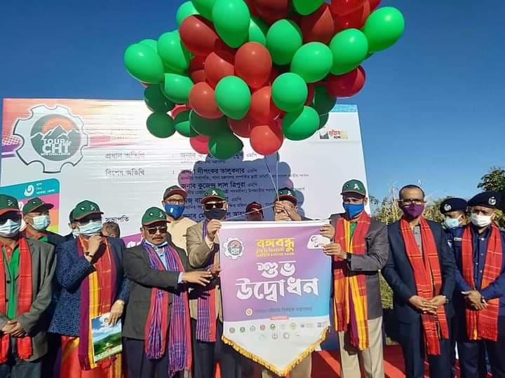 রাঙামাটির সাজেক ভ্যালি থেকে শুরু হওয়া ‘বঙ্গবন্ধু ট্যুর ডি সিএইচটি এমটিবি চ্যালেঞ্জ’ শেষ হবে আগামী ৩০ ডিসেম্বর বান্দরবানের থানছিতে গিয়ে। ৩০০ কিলোমিটার পথ পাড়ি দেয়ার এ চ্যালেঞ্জে অংশ নিয়েছেন দেশের বিভিন্ন অঞ্চলের ১০০ প্রতিযোগি।