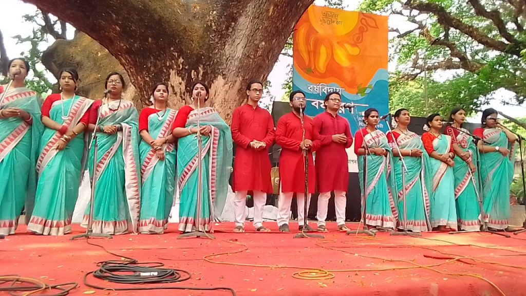 বৃহস্পতিবার (১৪ এপ্রিল) সকাল থেকে নানা বয়সের লোকবজন লাল-সাদা শাড়ি, পাঞ্জাবি পড়ে বর্ষবরণ উৎসবে আসেন। সকাল সাড়ে আটটায় বেহালার সুরে সুরে শুরু হয় বাংলা নববর্ষ বরণের অনুষ্ঠান।