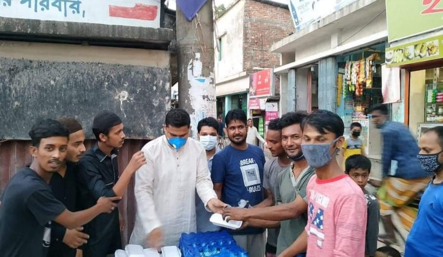 করোনার ক্রান্তিকালে নোয়াপাড়ায় হক কমিটির খাদ্যসামগ্রী বিতরণ