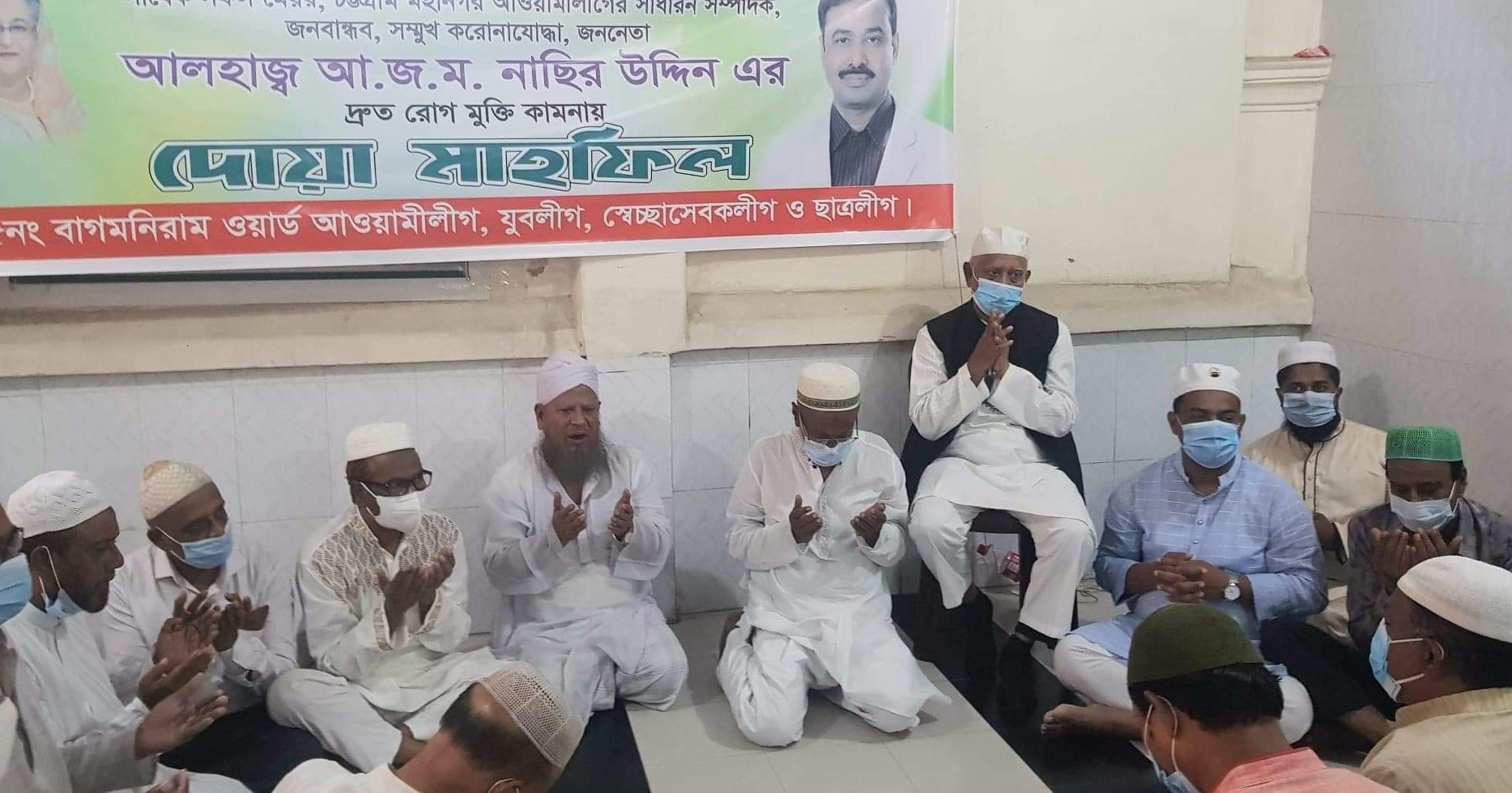 আ জ ম নাছির উদ্দিনের রোগমুক্তি কামনায় ১৫ নং বাগমনিরাম ওর্য়াড আওয়ামী লীগের উদ্যোগে দোয়া মাহফিল অনুষ্ঠিত