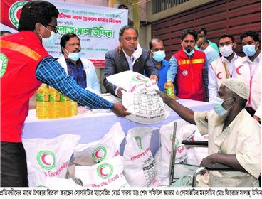করোনাকালীন সময়ে প্রতিবন্ধীদের মাঝে রেড ক্রিসেন্টের খাদ্য সামগ্রী বিতরণ