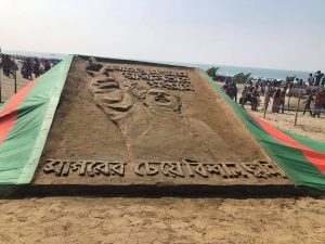 কক্সবাজার সমুদ্র সৈকতে বালু ভাস্কর্য নির্মাণ